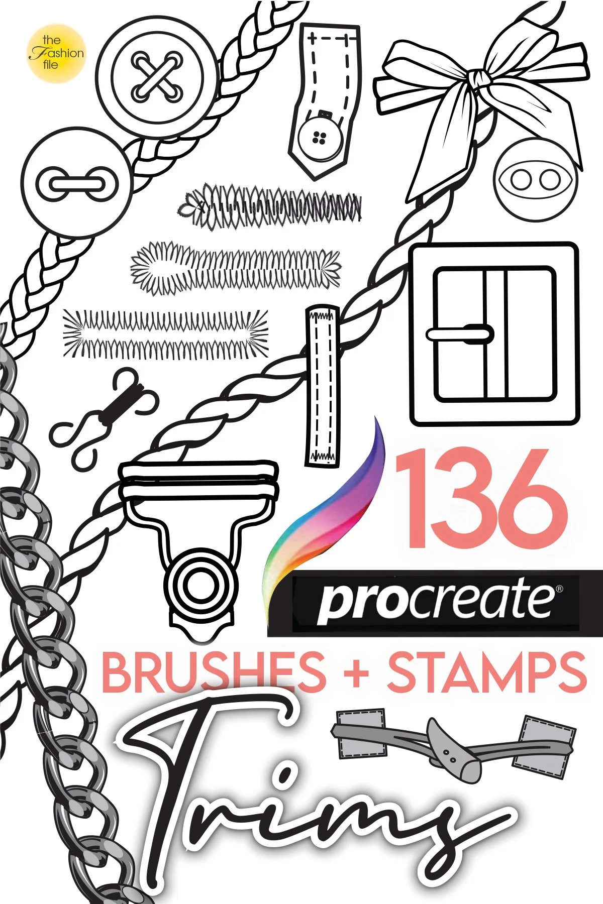 From fashion figures, technical flats templates, stitch and trims brushes, a variety of fabric textures and prints, and even 3D effects to recreate fading on garments, illustrating fashion with our brushes and stamps for Procreate is easier than ever.